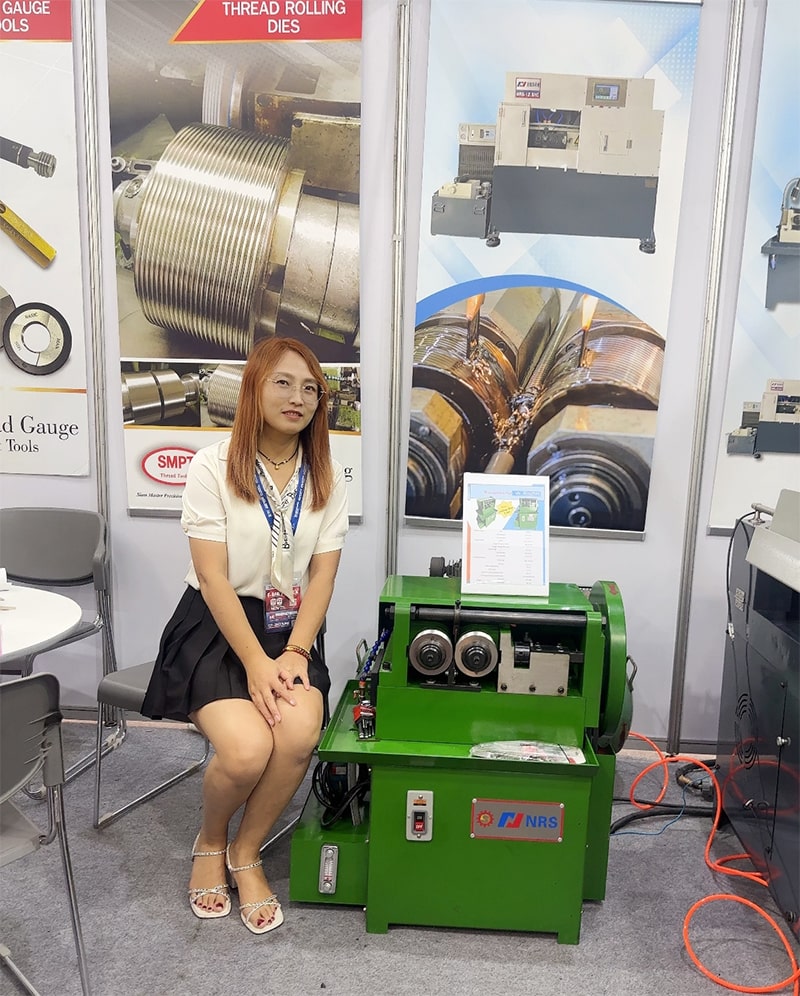 A bhuíochas leis an iontaobhas agus le comhoibriú an Uasail Thanapath na Téalainne, taispeánadh meaisín rollaithe snáithe uathoibríoch agus meaisín mheicniúil an Chuideachta ag Meaisín Rolling Snáithe 3T ag Taispeántas Tionscal na Téalainne 2025. Bhí a lán daoine ag faire ar an taispeántas, agus tá suim mhór ag go leor aíonna inárMeaisín rollta snáithe uathoibríoch, go háirithe an friothálaí uathoibríoch, atá ina chúntóir maith i ndáiríre chun saothair a shábháil. Ní hamháin go bhfuil luas beathaithe tapa, suíomh cruinn, ach níos mó cobhsaíochta ag an bhfriothálaí uathoibríoch, agus tá cruinneas an táirge níos airde.